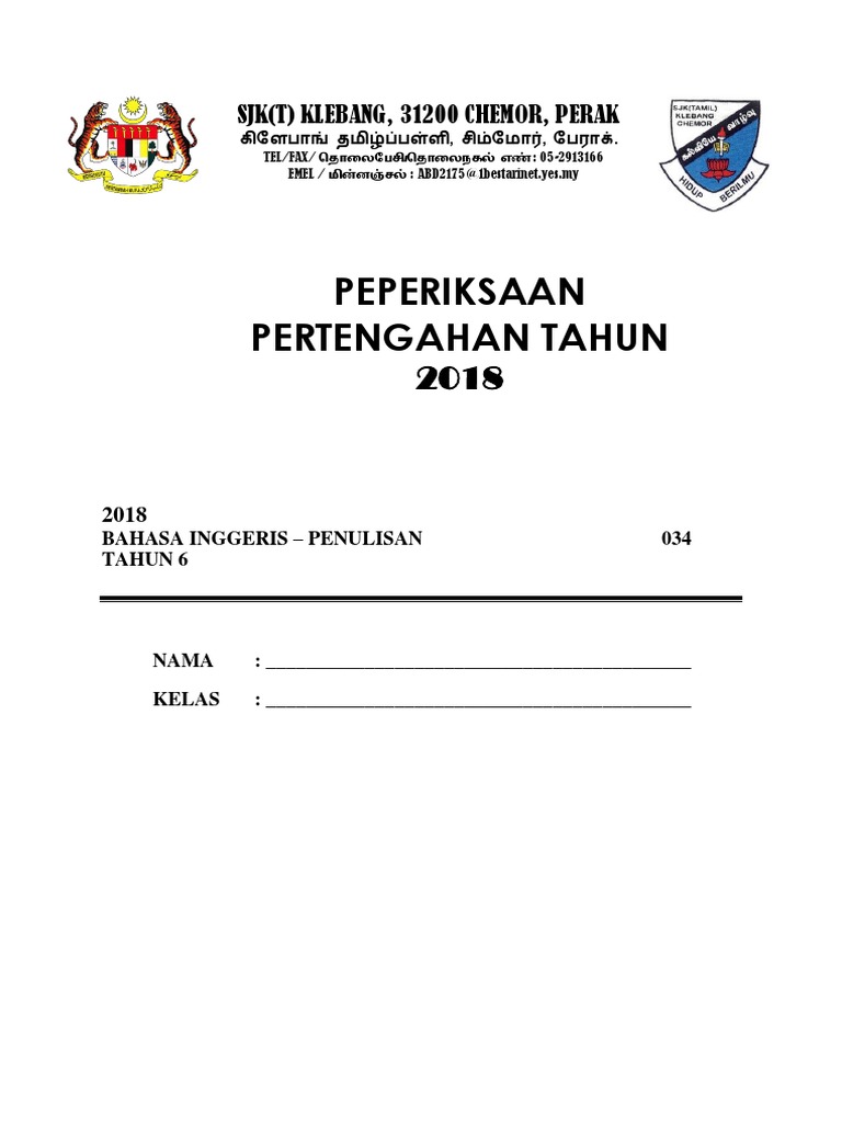 Minggu berikutnya pula adalah pada 24 September 2018 bagi kertas Bahasa Melayu Pemahaman dan Penulisan 25 sSeptember 2018 Bahasa Inggeris Pemahaman dan Penulisan 26 September 2018 Matematik dan 27. Tiap-tiap soalan dalam Bahagian A diikuti oleh empat pilihan jawapan iaitu A B C dan D. Calon wajib menduduki semua kertas peperiksaan bagi mata pelajaran yang didaftar.
